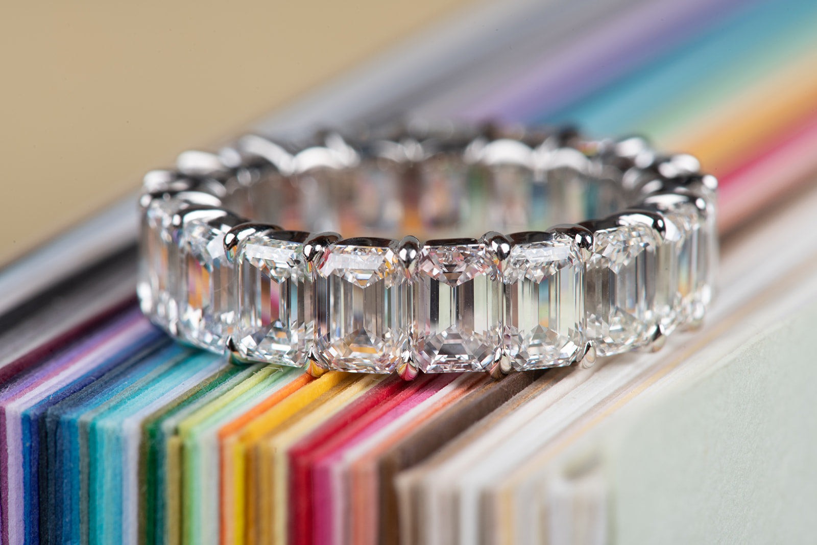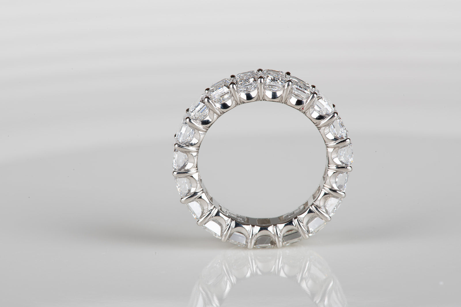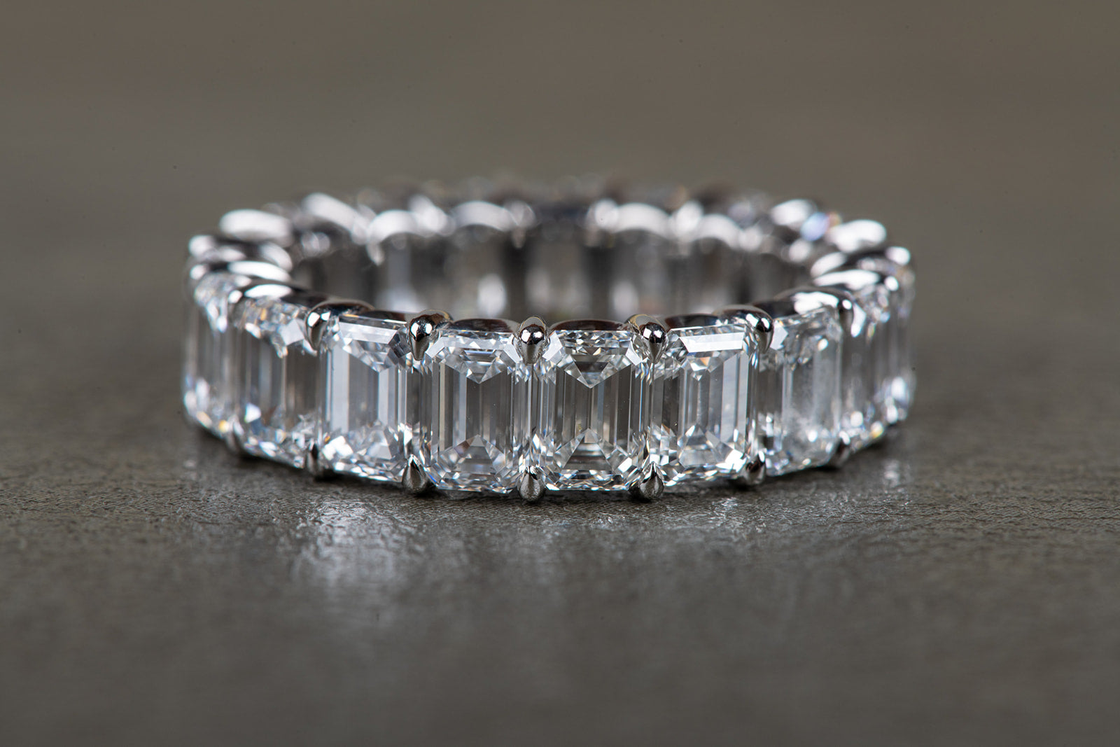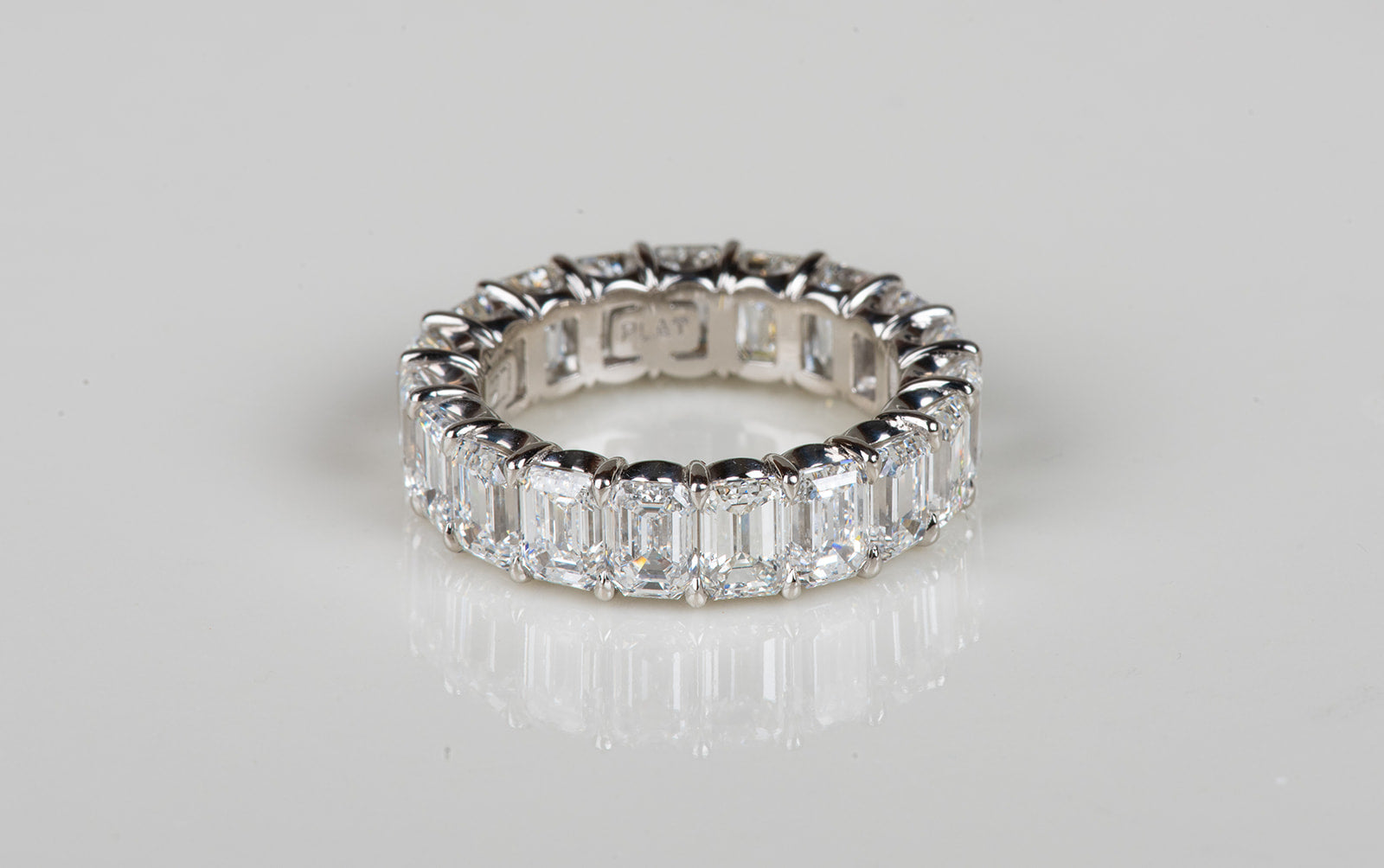 perfect emerald cut diamond infinity ring in platinum